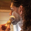 Aanbrengen op het gezicht: Gebruik de scheerkwast om het schuim in cirkelvormige bewegingen op je gezicht aan te brengen. Dit helpt de baardharen op te tillen en de huid te exfoliëren, wat leidt tot een gladder scheerresultaat.