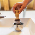 4. Voeg enkele druppels water toe in een (scheer)kom en klop met een draaiende beweging het schuim tot de gewenste dikte.